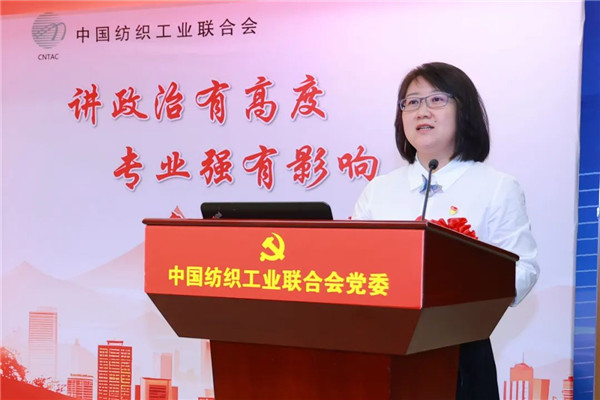 中国纺联团委副书记、产业用协会青年理论学习小组组长白晓,中国服装设计师协会会展中心副总监王影汇,中国服装协会党总支委员、专职副会长杜岩冰,纺织贸促会第二党支部书记、副秘书长林学森,中国纺织信息中心团总支书记王佳月作为中国纺联党委2023—2024年度优秀共产党员代表在会上交流发言。